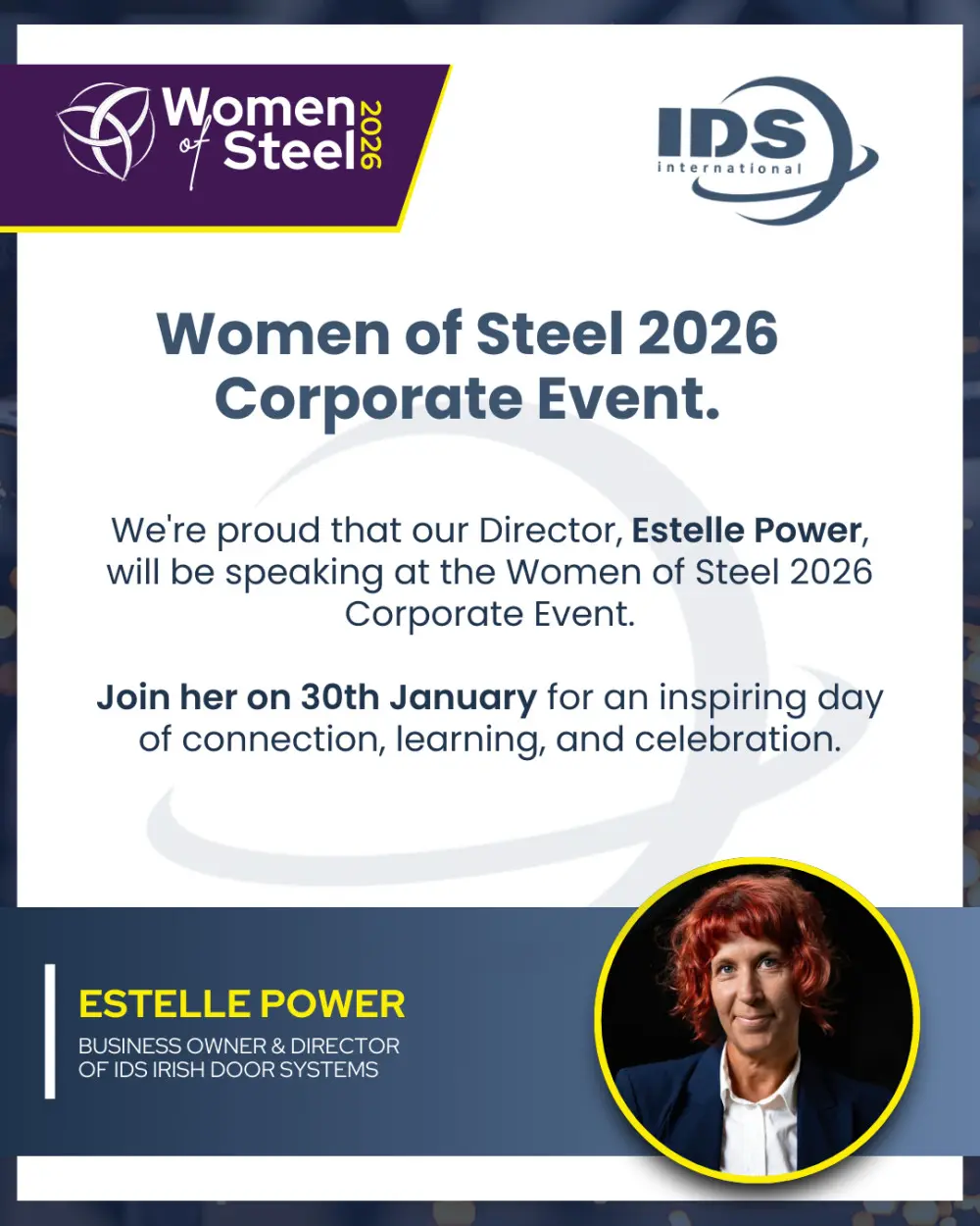 At IDS Irish Door Systems, we believe in supporting women in industry, and we’re honoured to see Estelle take the stage at this inspiring event celebrating the incredible women driving Ireland’s steel sector forward.