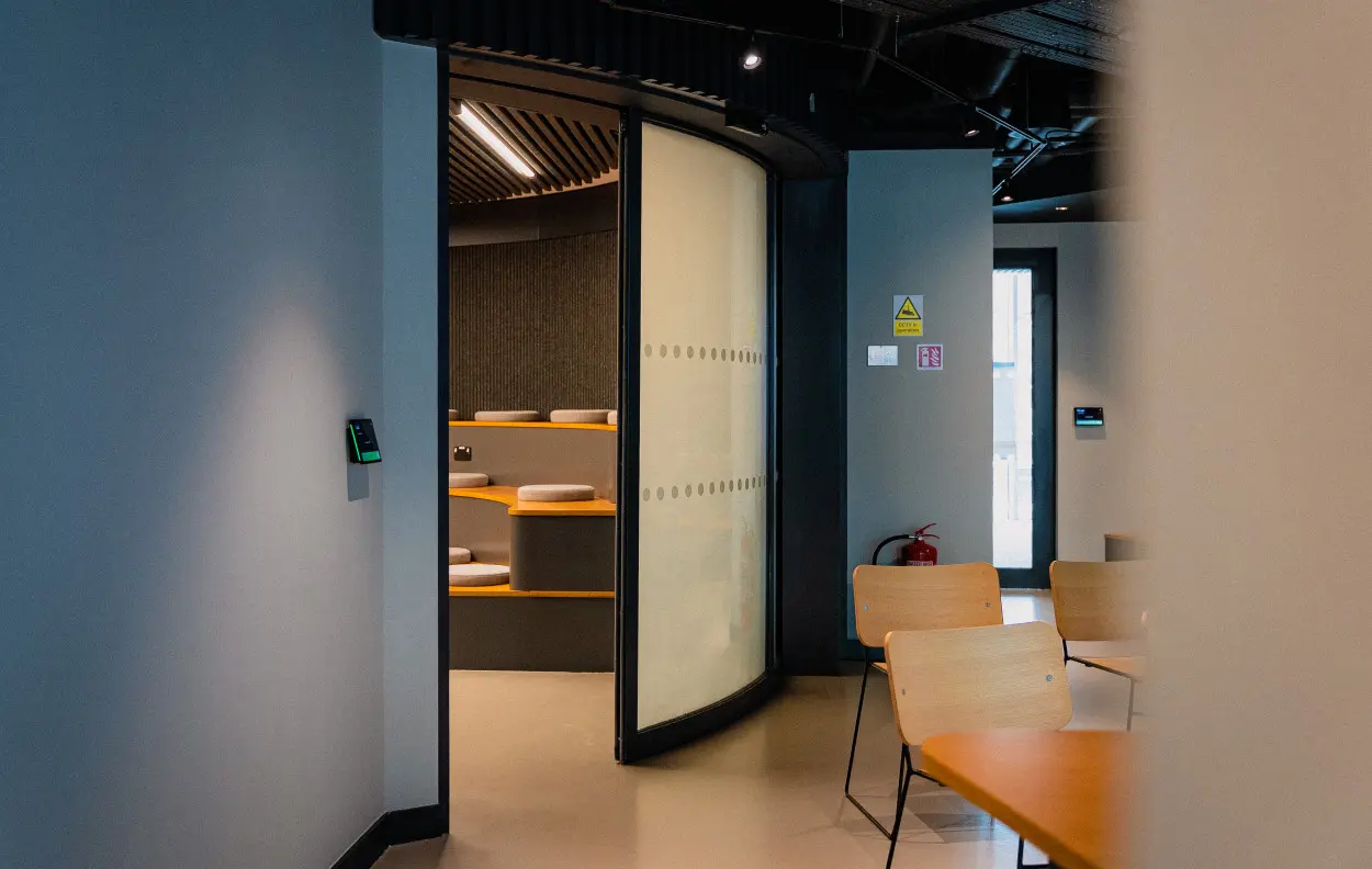 Supplied and installed two Double Curved Automatic Bi-Parting Doors with Smart Glass and advanced sensor technology, enhancing building security and modern aesthetics.
