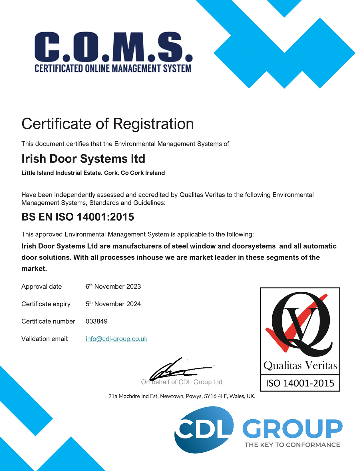 Its longevity means fewer replacements, less waste, and greater energy efficiency over time. By using steel at the core of our products, IDS delivers door systems that are as responsible as they are resilient — combining sustainability with compliance and performance.